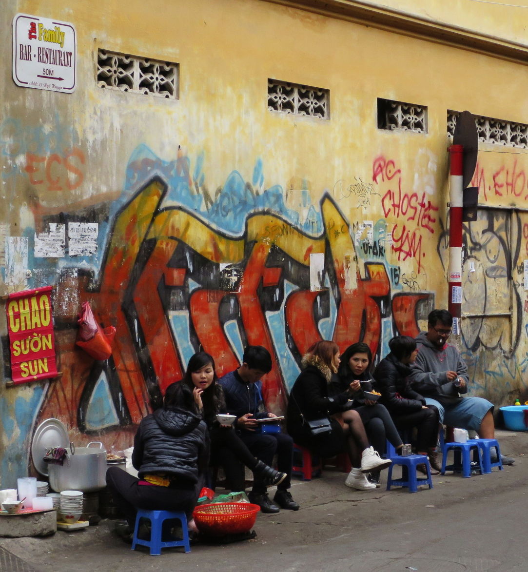 Côté repas, je suis des plus heureux ! J'étais impatient de goûter la "street-food" d’Hanoï, et je suis agréablement surpris. Car je ne pensais pas que ça serait aussi différent. Là encore, on pourrait presque se croire dans un autre pays. Les soupes de nouilles sont toujours omniprésentes, mais ici très souvent les bouillons sont faits avec de la tomate, et certainement des épices et herbes différentes, qui changent complètement la saveur. C'est vraiment super bon, mais le plus surprenant c'est de voir à quel point ces soupes là sont partout ici, alors qu'on ne les trouve nulle part dans le sud. Est-ce que ce sont les goûts des gens qui sont différents entre le nord et le sud ? Ou bien est-ce que ce sont les recettes qui ne voyagent pas ?