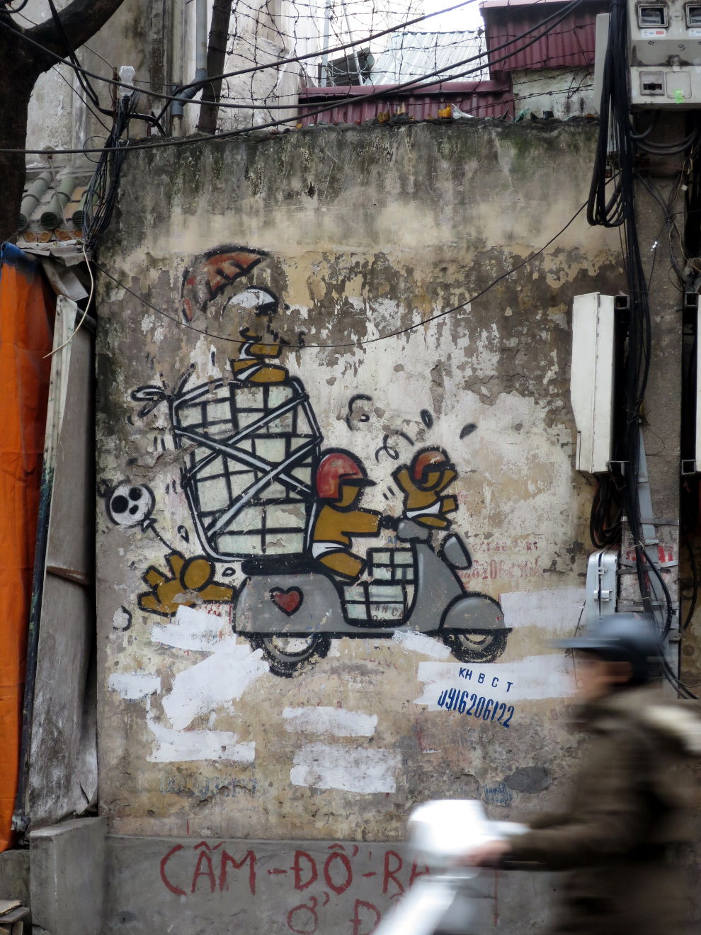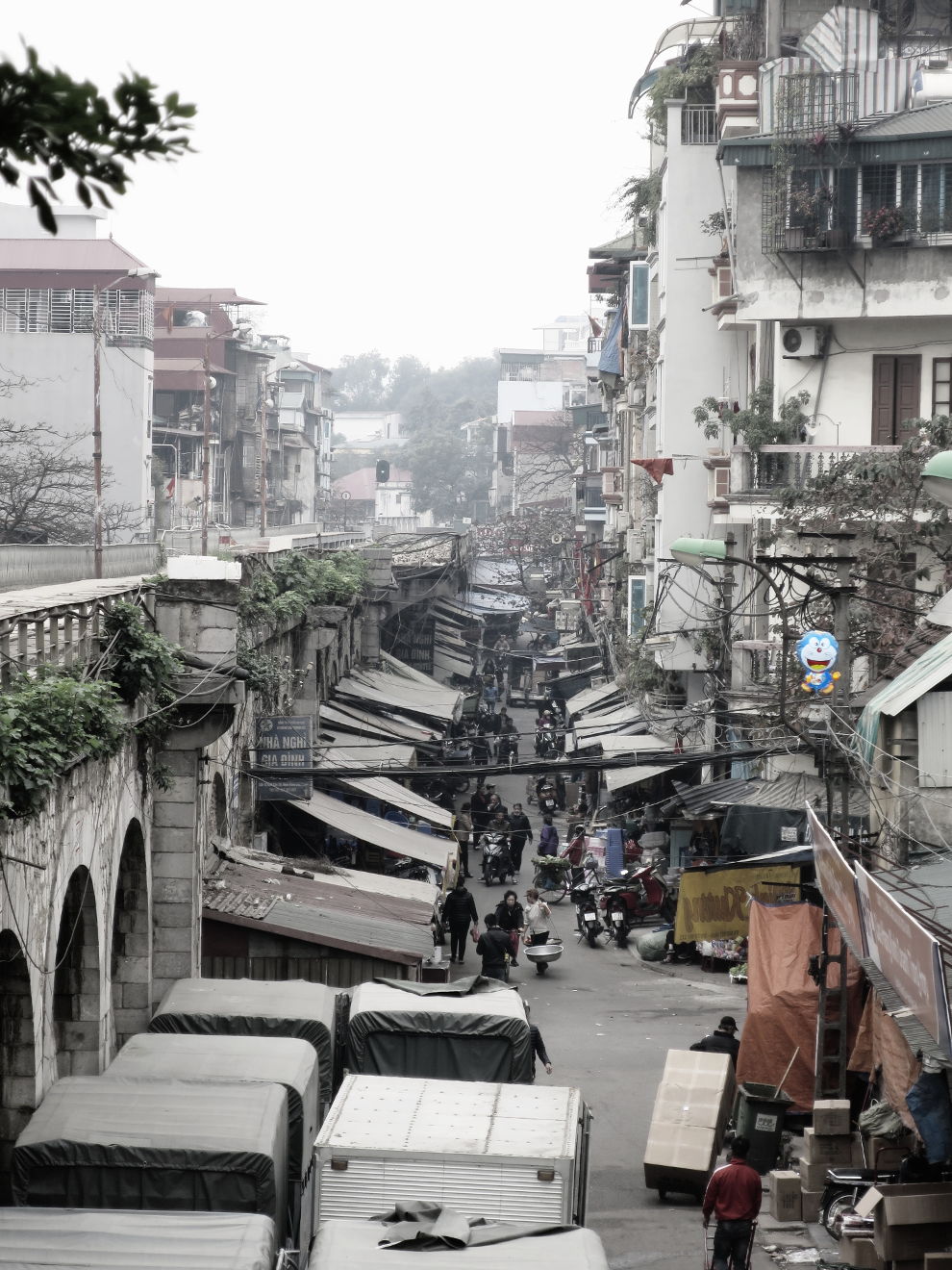 Hanoï m'a aussi semblé beaucoup plus calme que Saïgon. Moins de trafic, moins de bruit, moins de scooters (plus de voitures). Il y a du monde, mais ça semble être moins surpeuplé. Par contre, les gens semblent moins avenants, mais peut-être parce que c'est l'hiver et la grisaille, ça rend tout le monde un peu renfrogné. Et puis la ville semble plus pauvre aussi. Mais c'est difficile à estimer.